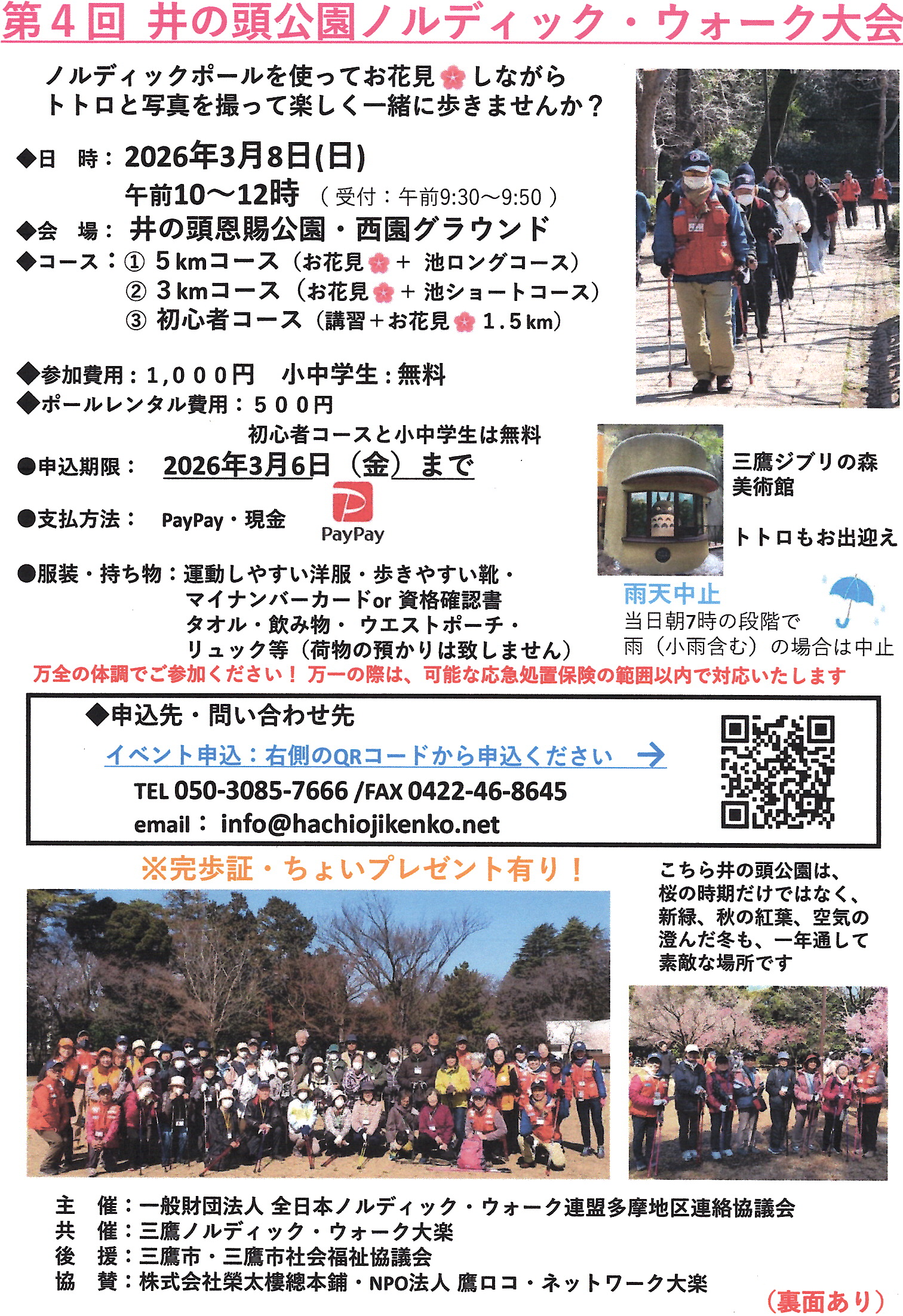 2026年3月8日(日)午前10時から、「第4回井の頭公園ノルディック・ウォーク大会」が開催されました! 当日は、筋肉量等体組成の無料測定会や、ノルディック・ポール無料体験階も、実施いたしました。 鷹ロコでは、ノ…